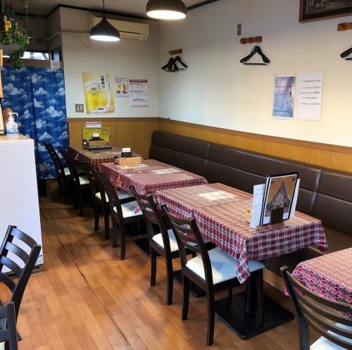 テーブル席の片側はソファなので、ゆったり落ち着いて過ごせます♪席はくっつけることができるので、少人数から大人数までご利用いただけます!